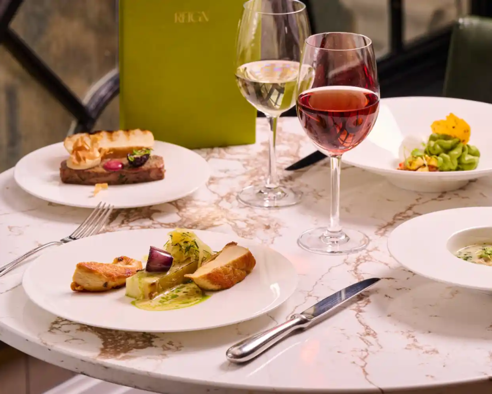 Indulge in an evening of considered luxury at Reign, the signature restaurant at The Rex. Our five-course tasting menu, priced at £65 per person, is a curated journey through seasonal British produce - expressive, elegant and quietly confident.